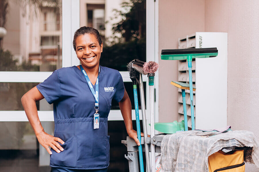 Como a Braesp prioriza ter uma equipe bem treinada, o hospital se torna mais ágil na limpeza de ambientes críticos, na limpeza de enfermarias e muito mais.